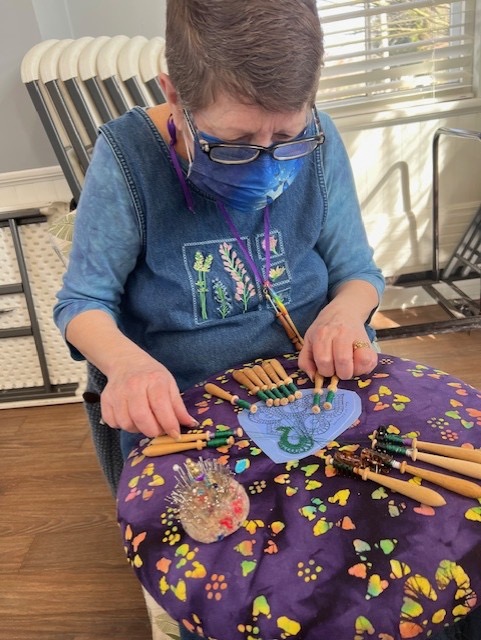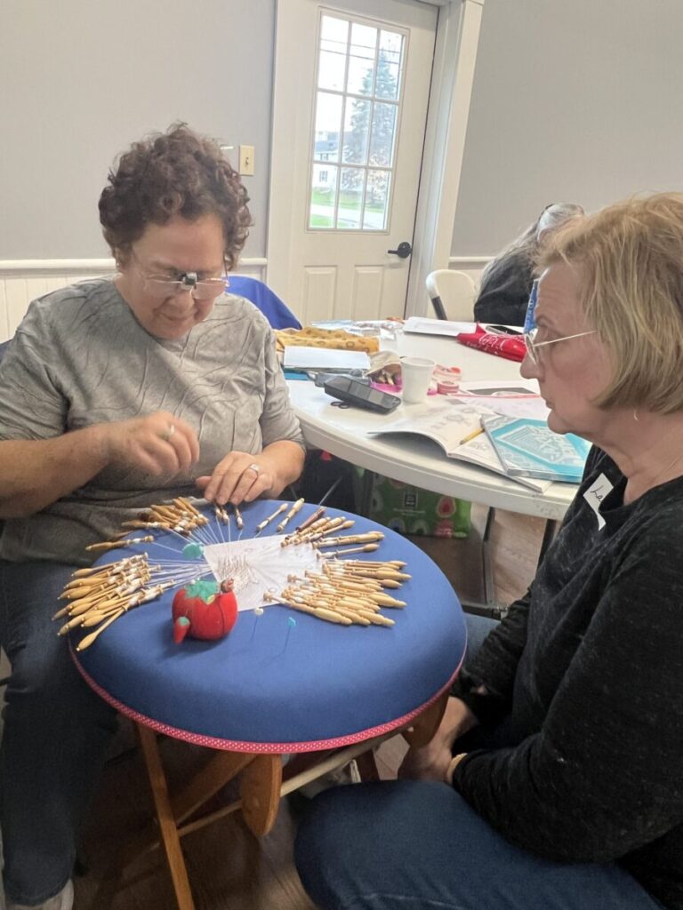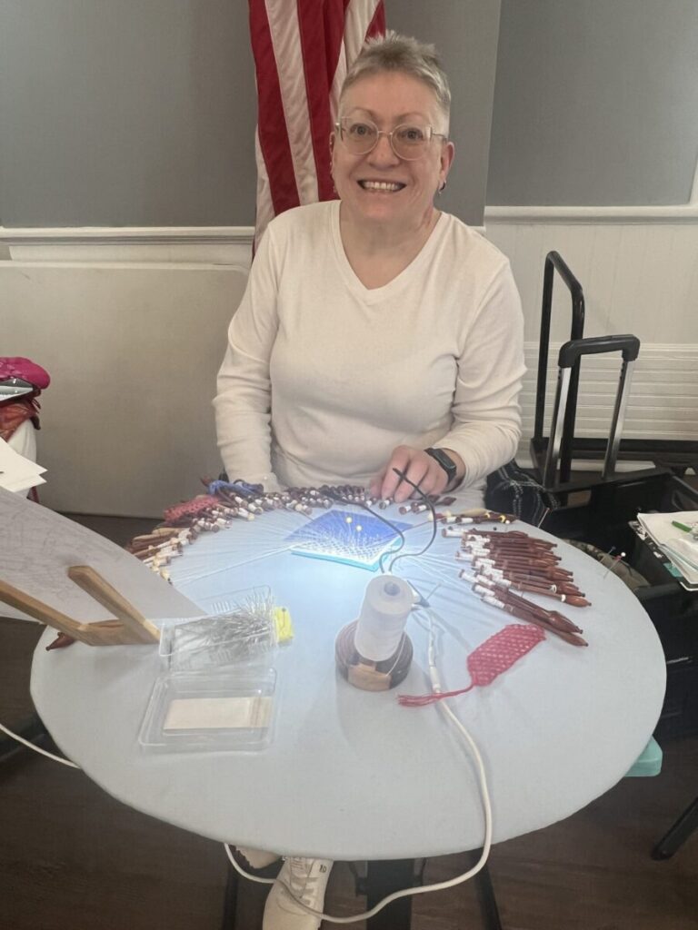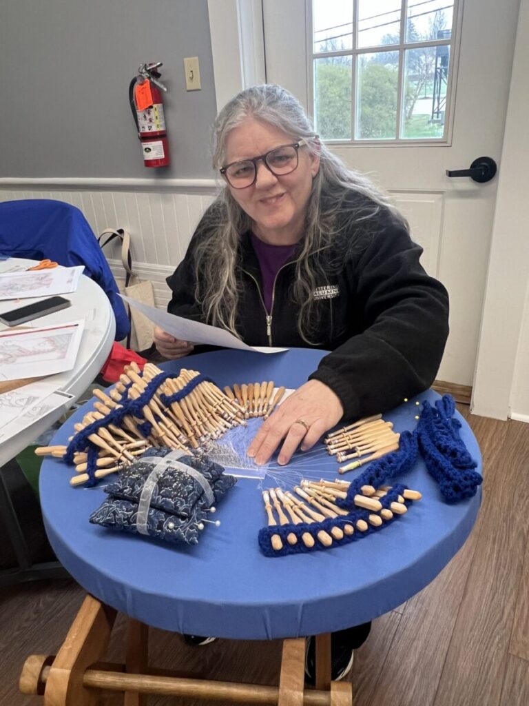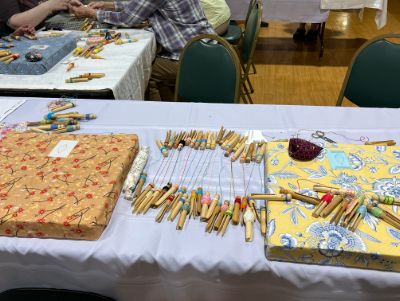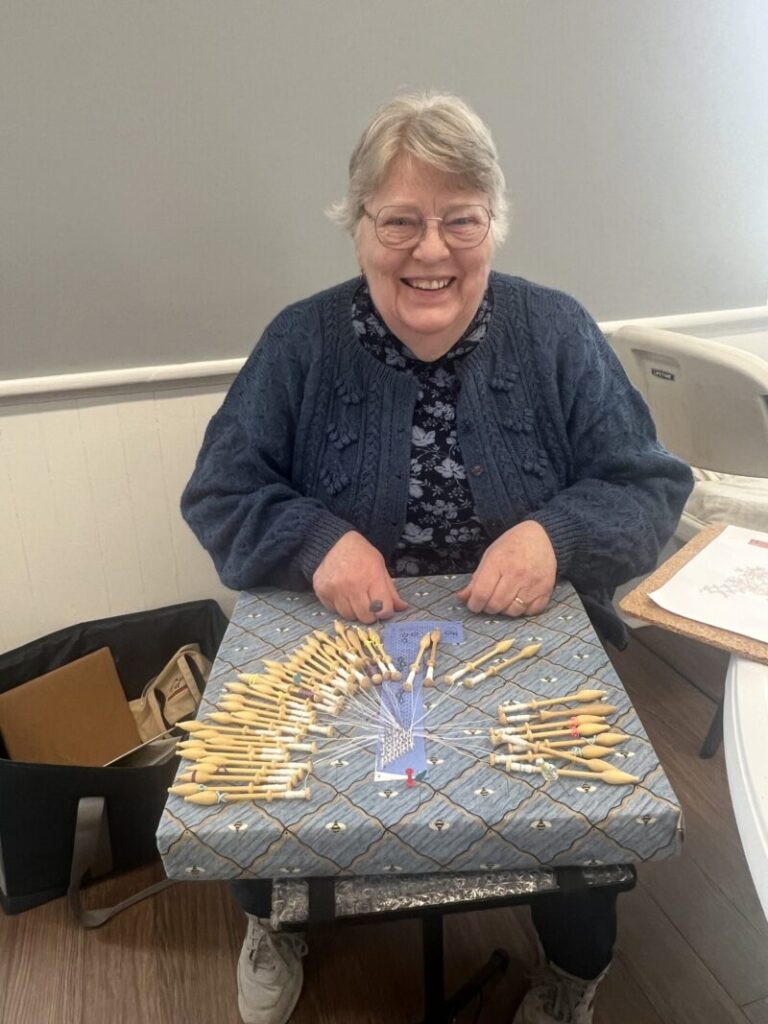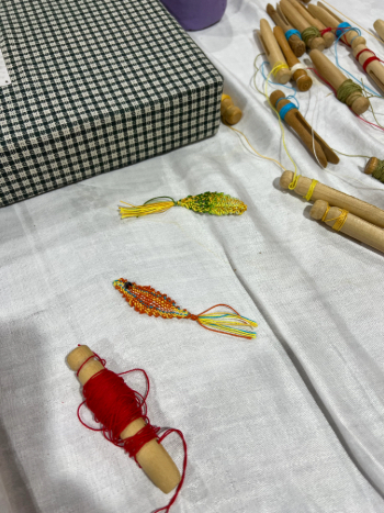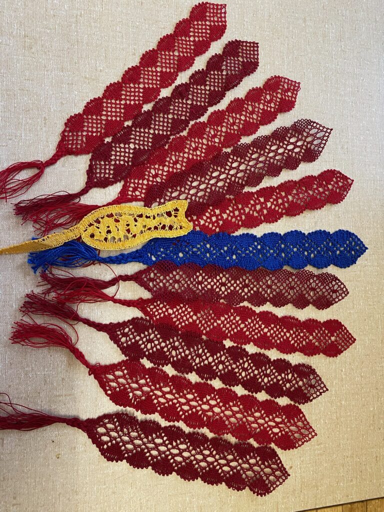 Our members created some of these needle lace leaves as part of the RADIANCE group lacemaking project.