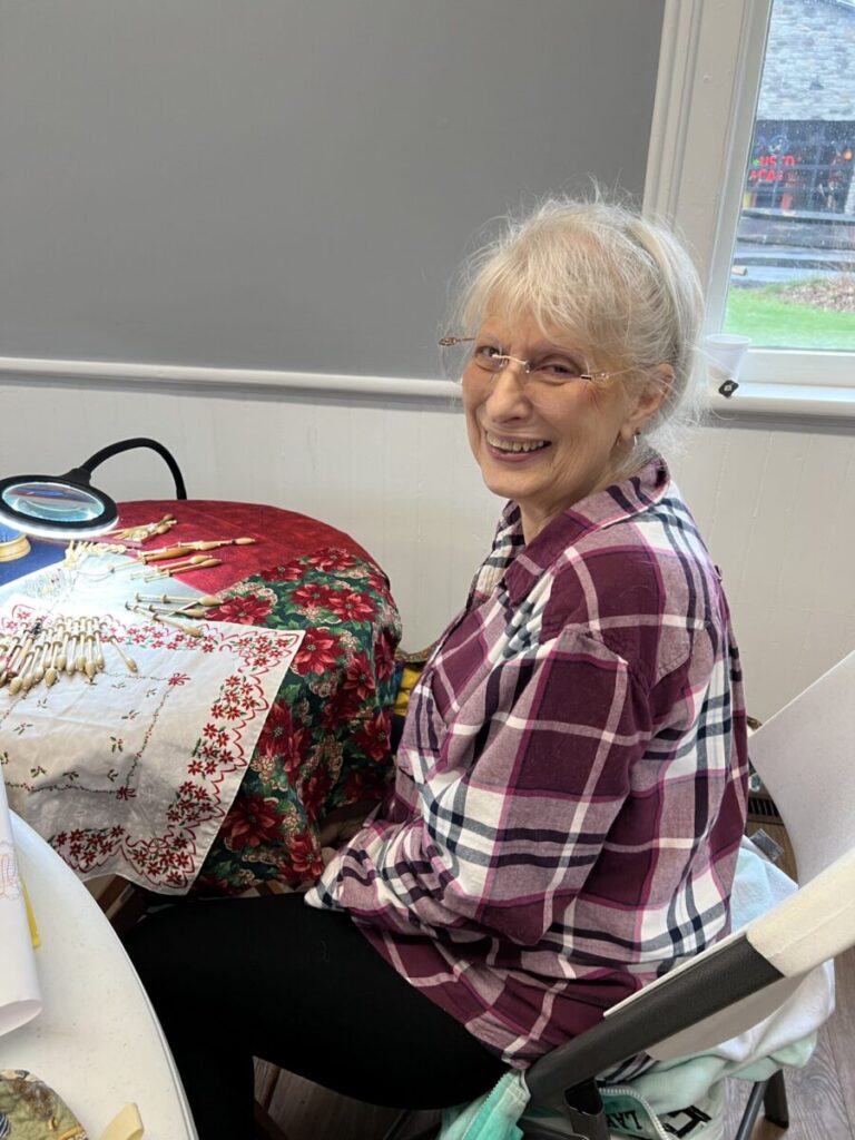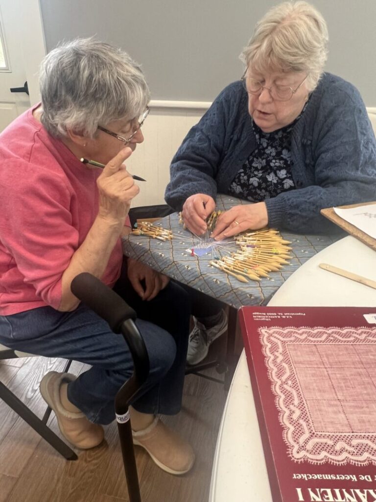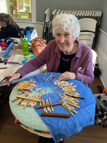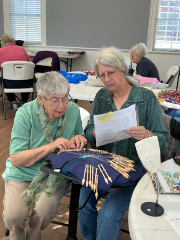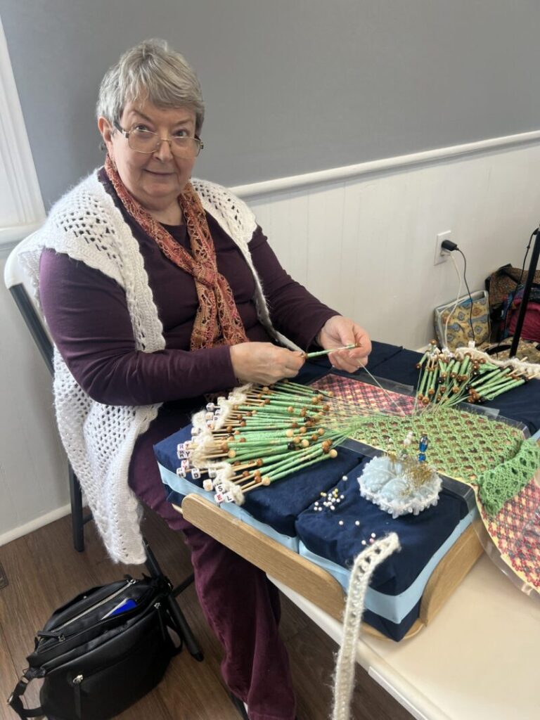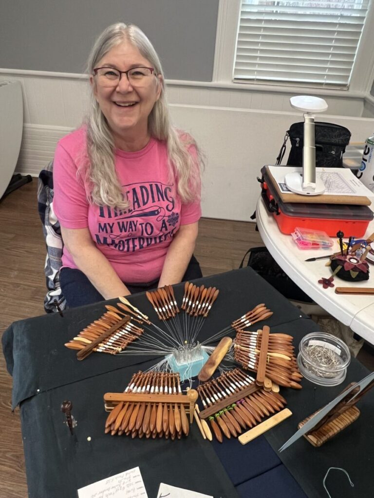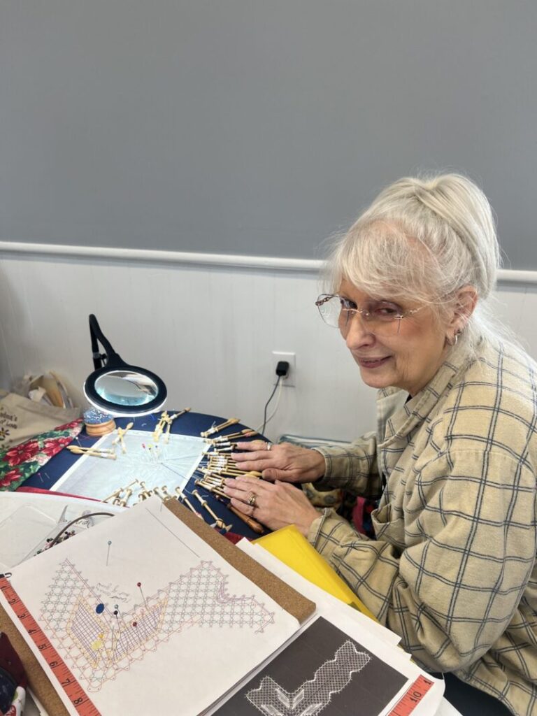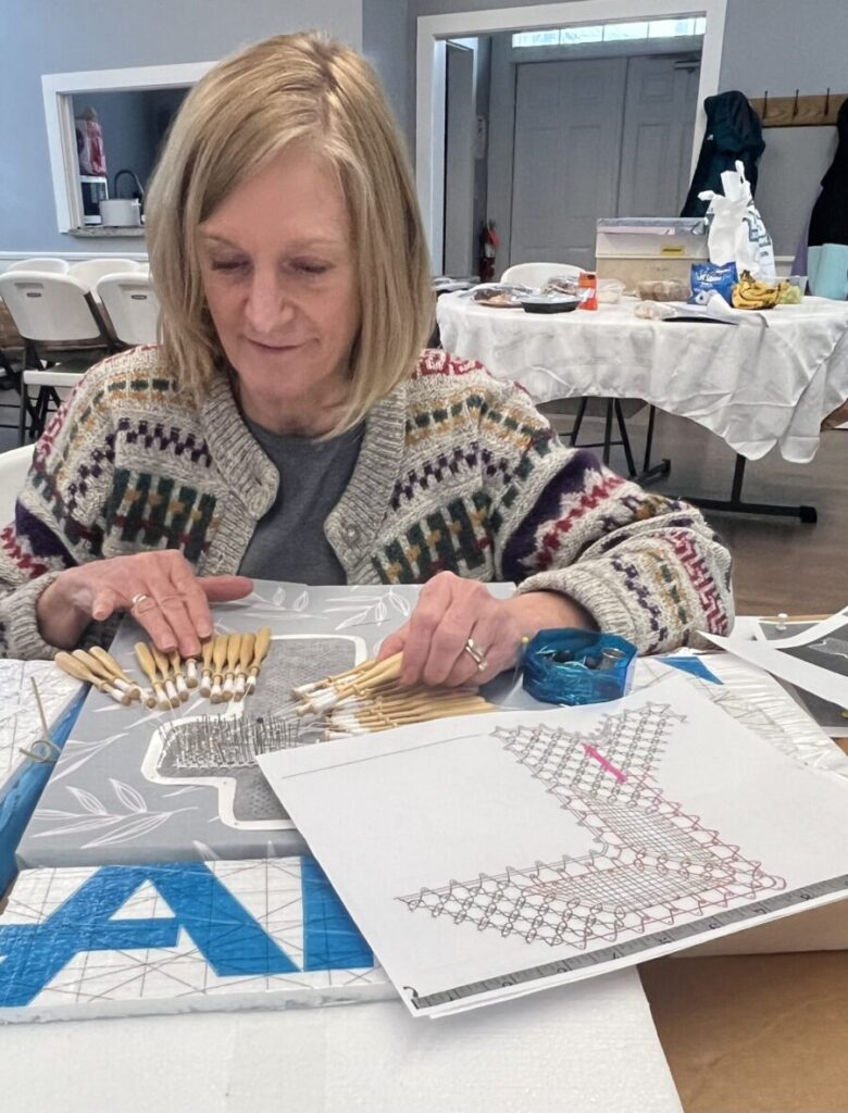 Our members created some of these needle lace leaves as part of the RADIANCE group lacemaking project.