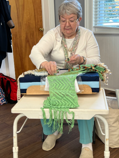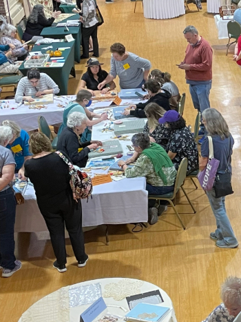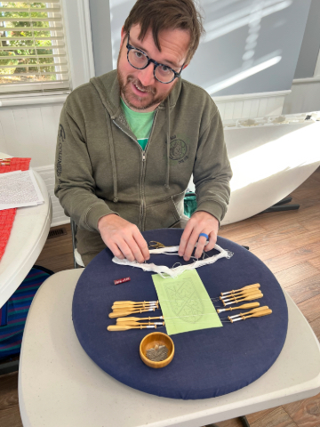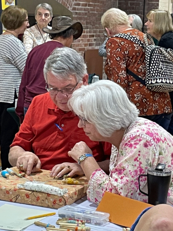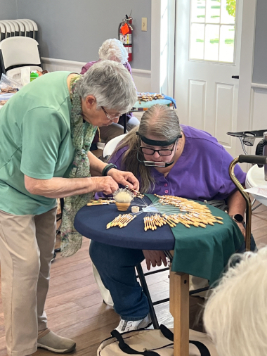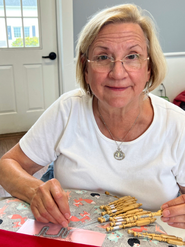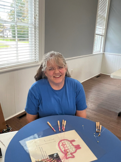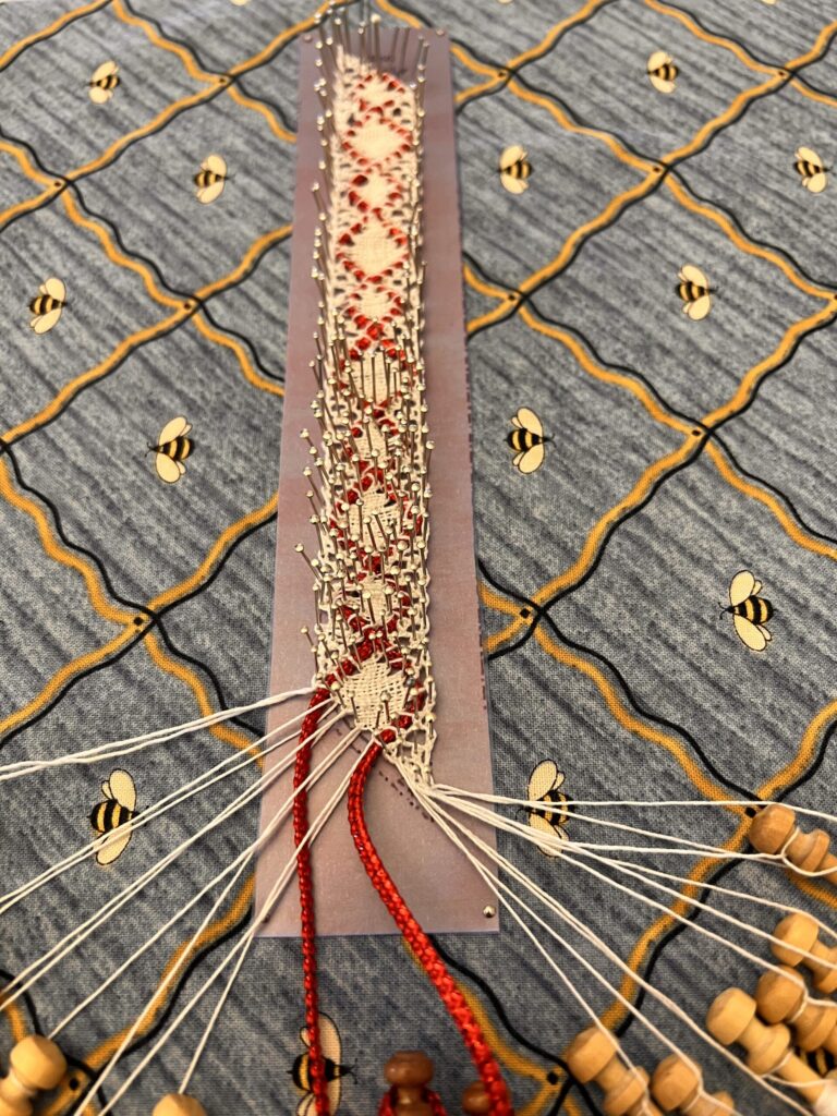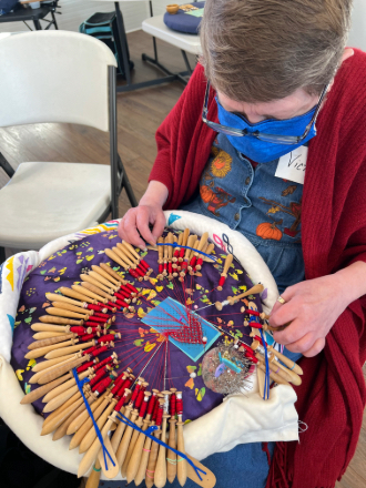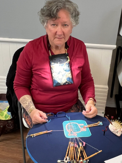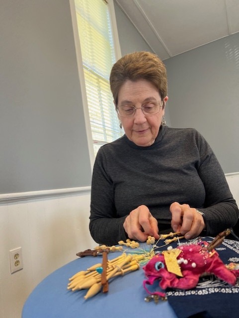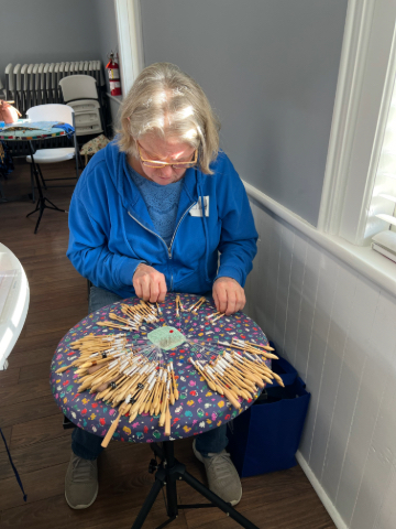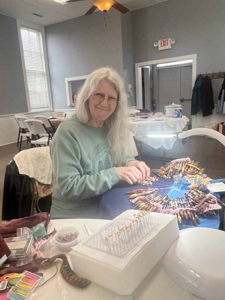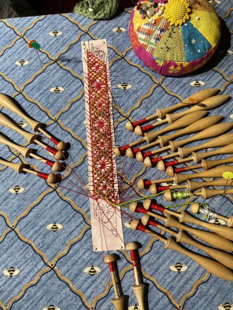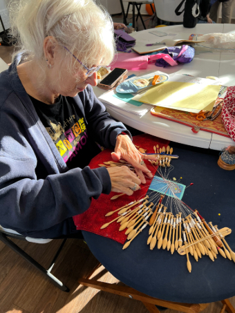 Our members created some of these needle lace leaves as part of the RADIANCE group lacemaking project.
